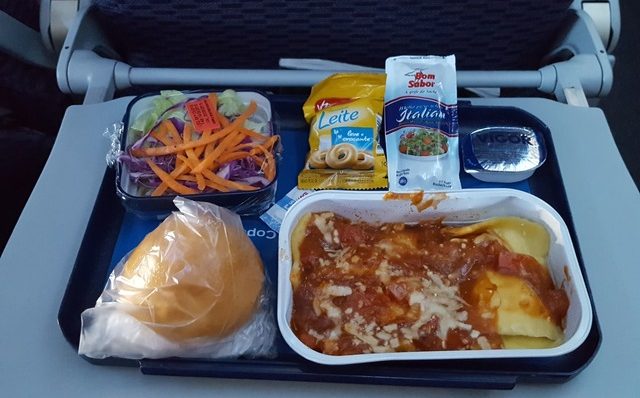 As refeições são servidas em pequenas porções e a escolha é sempre entre um tipo de massa ou uma carne. Se você costuma sentir fome, leve algo na bolsa ou faça uma refeição antes de embarcar.