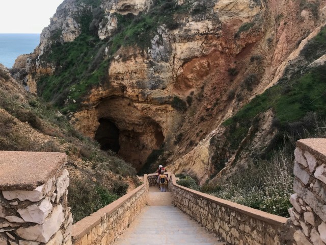 Após o almoço, outra atração é caminhar pelo centrinho e ver a paisagem de cima da falésia. Caminhar pelo passadiço de Carvoeiro também rende belas fotos.